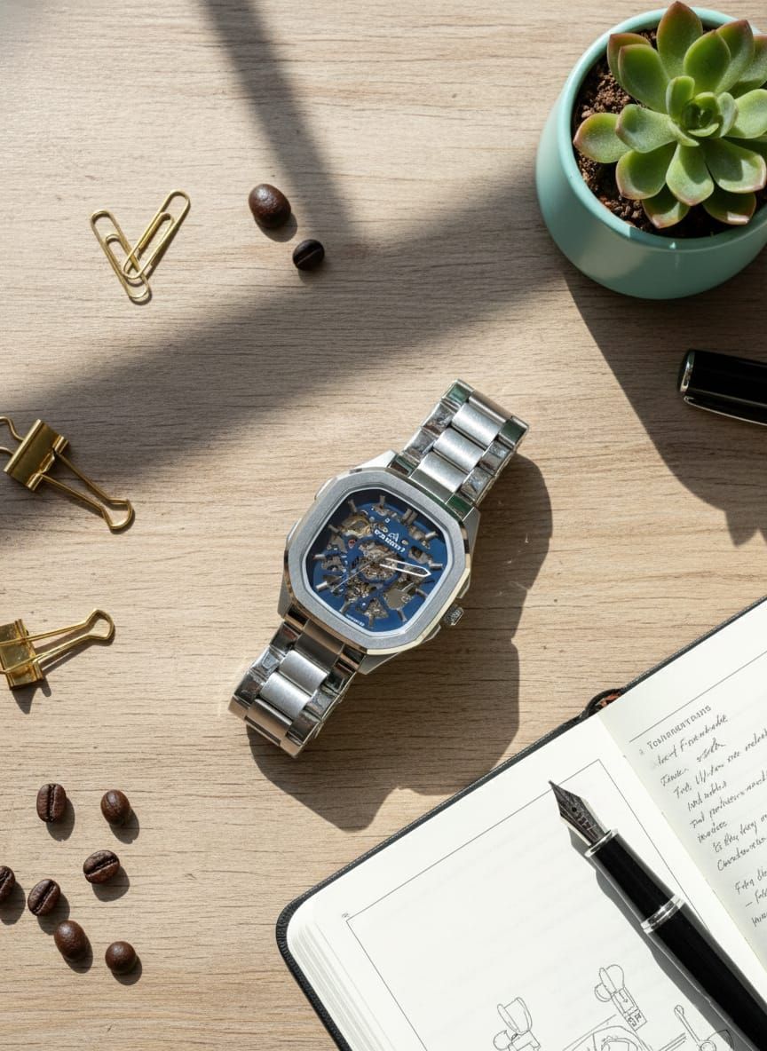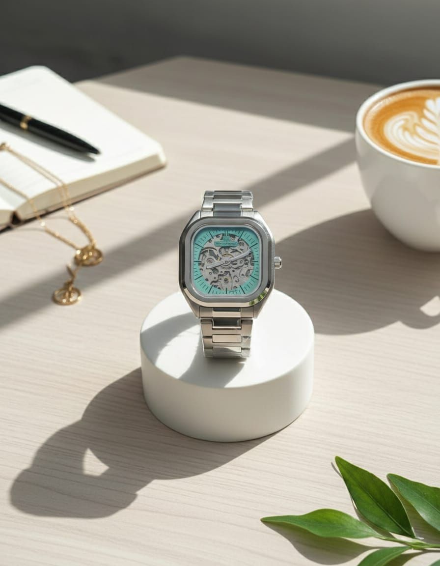 Unique Arabic Numeral Display: The dial features beautifully designed Eastern Arabic numerals, which not only stand out as a stylish design choice but also ensure effortless time reading.