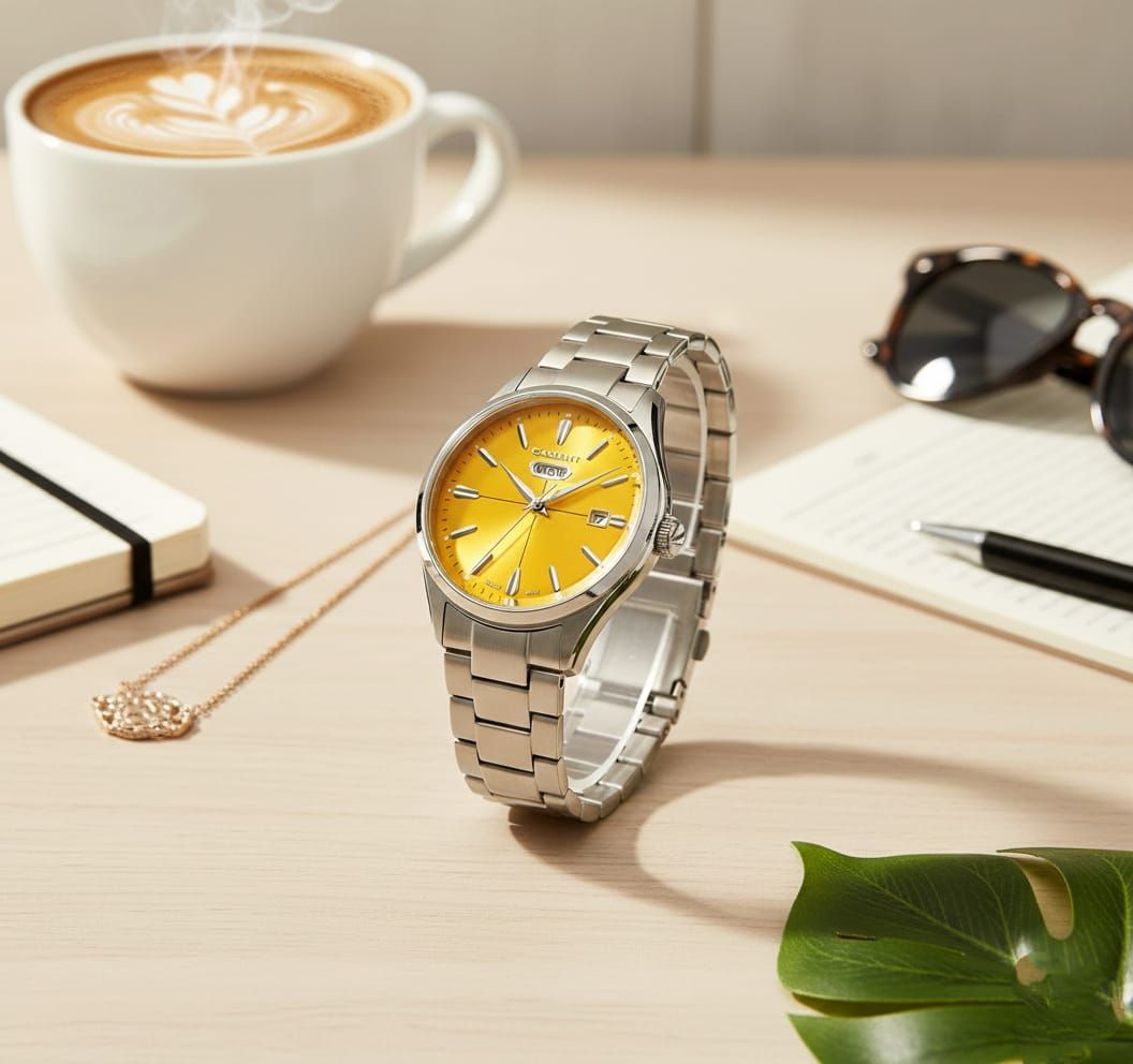 Highlights: Often available with a stainless steel chain strap and a multi-dial display that may include a date window and "world time" decorative functions.